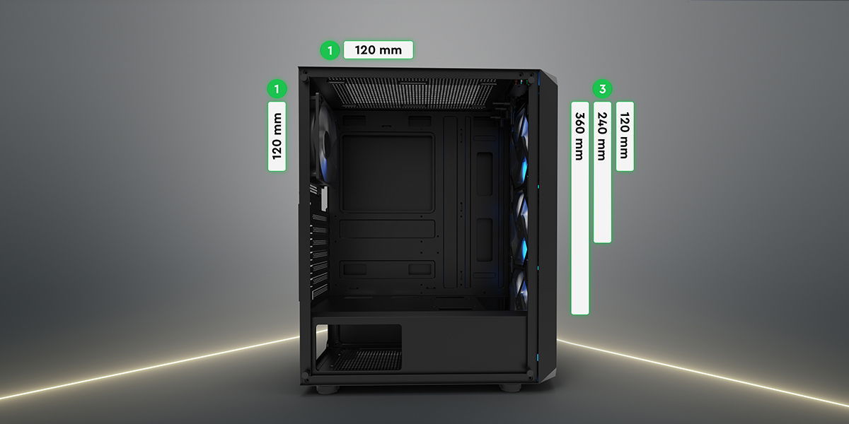 Ön ve üst tarafındaki mesh yapı sayesinde bileşenlerinizi optimum sıcaklıkta tutarak performanslarını artmasına yardımcı olur.