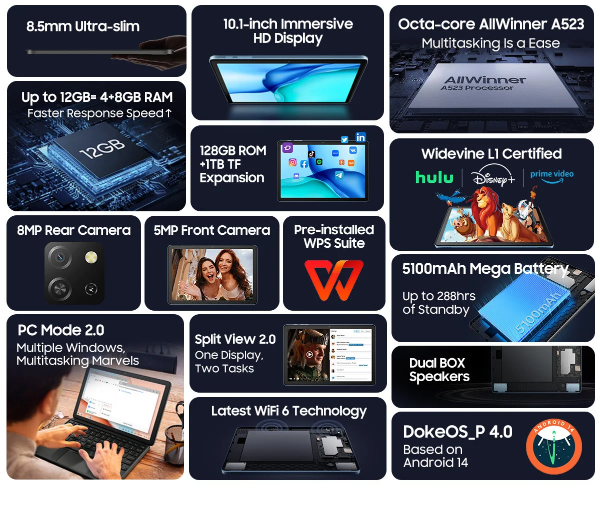 Doke Os'un Android tabanlı sistemi ile birlikte artık yaptığınız tüm iş ve oyunlarınızda daha akıcı ve daha etkileyici bir deneyim yaşarsınız.TEKNİK ÖZELLİKLER