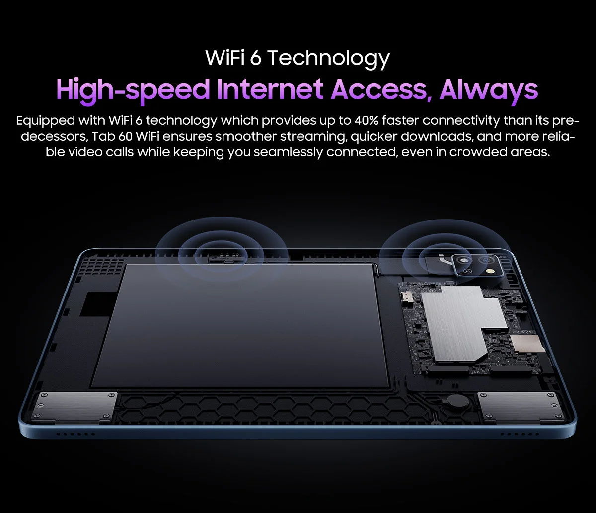 TAB60WIFI ile beraber size sunulan WIFI 6 teknolojisi ile %40'a varan çekim gücü ve hız ile birlikte internette gezerken daha hızlı olun.