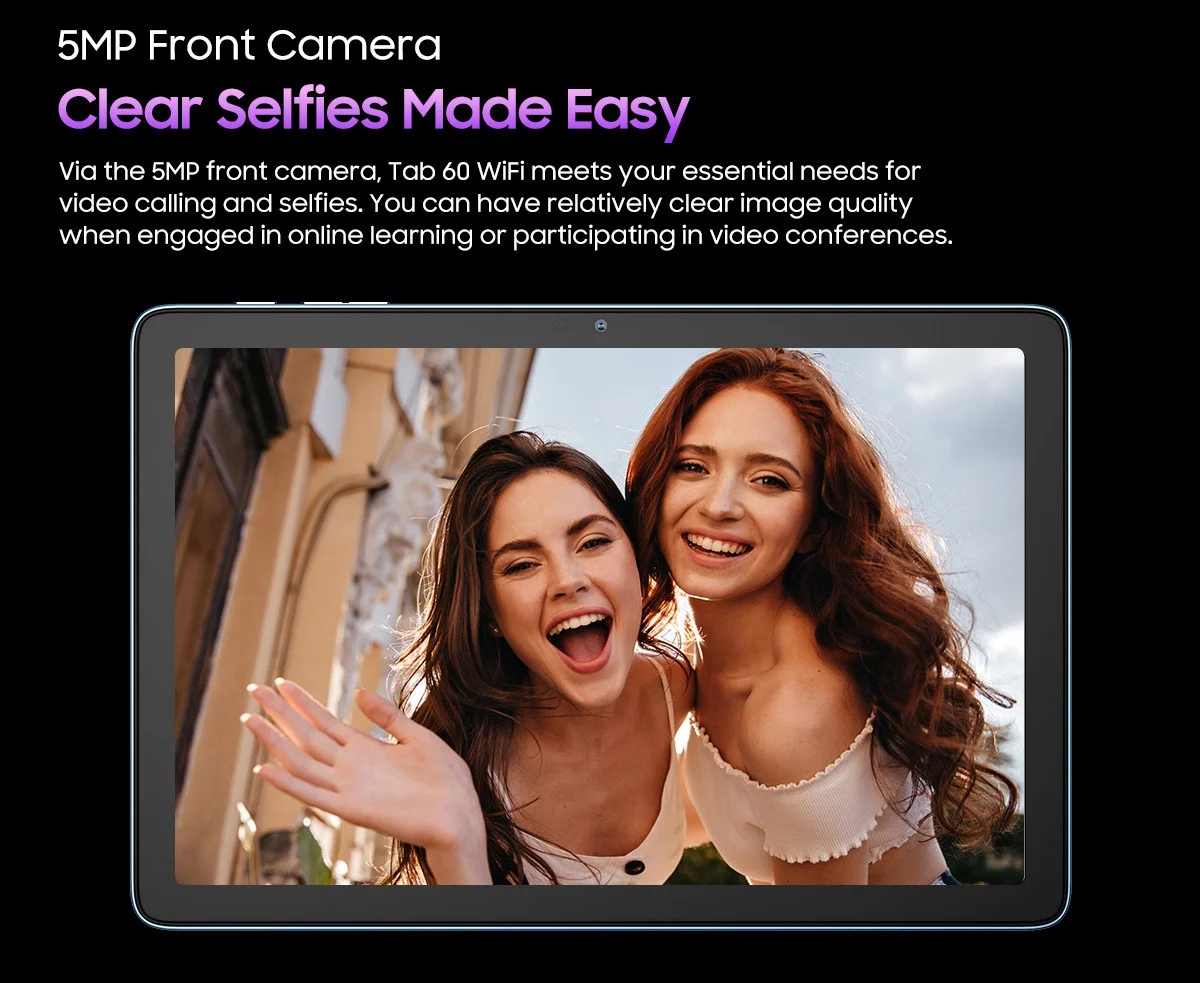 TAB60WIFI'nin etkileyici ve güçlü fotoğraflar çekmenizi sağlayan 8MP arka kamerası sayesinde sevdikleriniz ile birlikte güzel bir fotoğraf arşivi oluşturabilirsiniz.