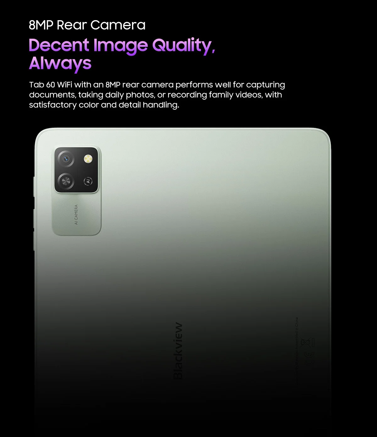 Blackview Tab60WIFI Tablet 10.1"/12 GB(4GB+8GB)/128 GB/8 MP+5 MP/Android14+Kılıf Dahil (Mavi) Genel Özellikler
