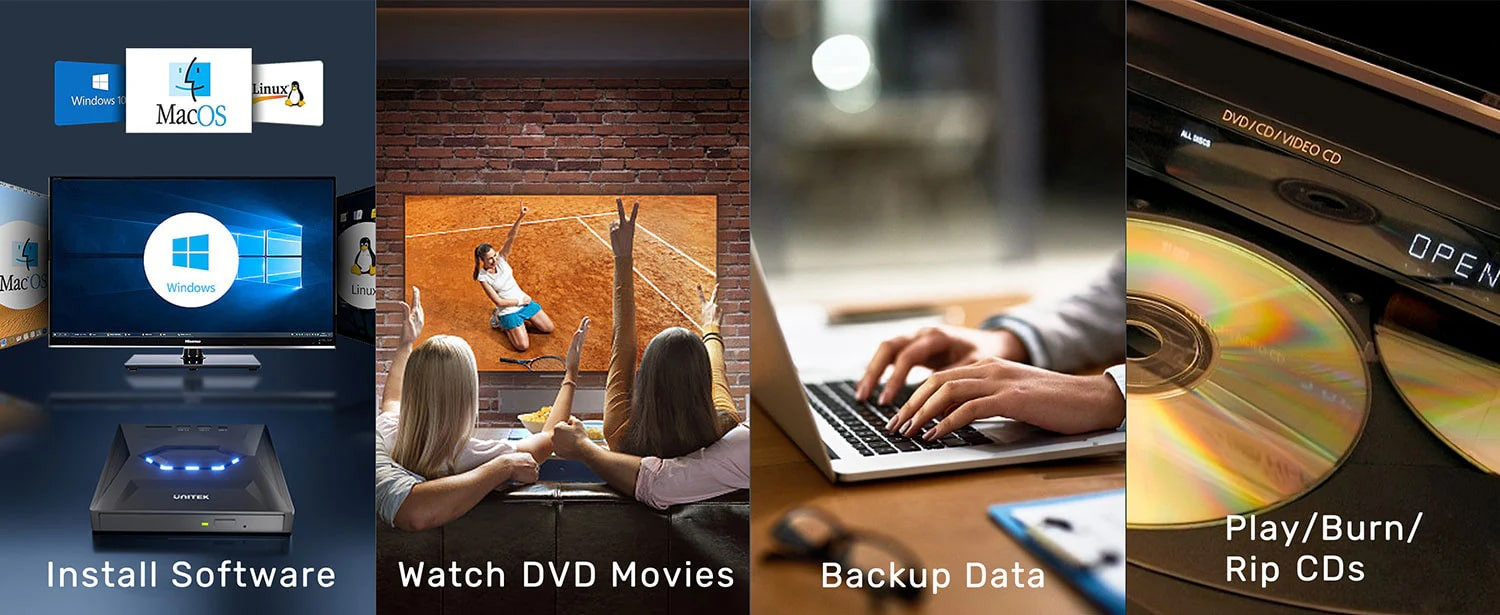 Yazılım Yükleme, DVD Film İzleme, Veri Yedekleme, DVD Oynatma/Yazma ve Rip Formatında tüm işlerinizi kolaylıkla yapın.